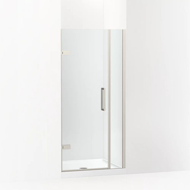 Kohler Composed™ Frameless Pivot Shower door (33.6" - 34.4" W x 71.6" H) with 3/8" (10mm) thick Crystal Clear glass - Anodized Brushed Nickel is backordered and will ship as soon as it is back in stock.