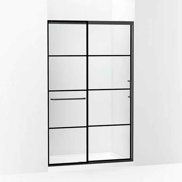 Kohler Elate® Sliding shower door (44.3" x 47.6" W x 75.5" H) with heavy 5/16" (8mm) thick glasswith Rectangular Grille Pattern in Matte Black