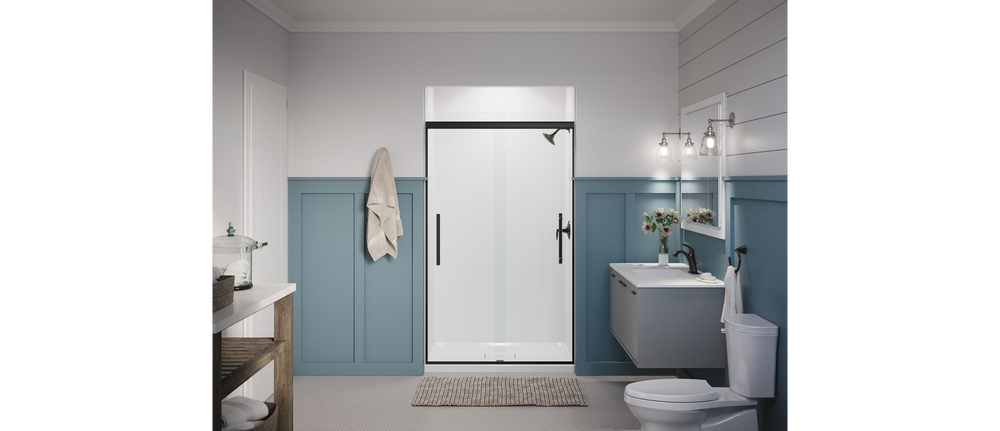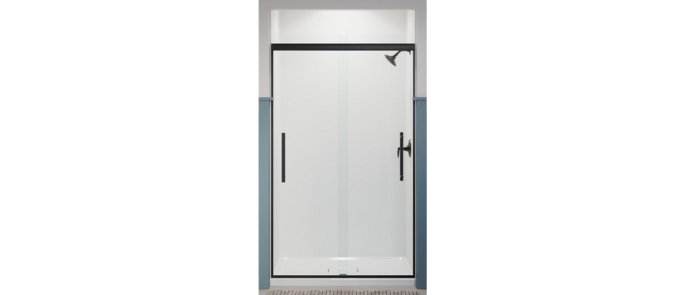 Kohler Pleat® Frameless Sliding Shower door (44.6" - 47.6"W x 79.1" H) with 5/16" (8mm) thick glass - matte-black-frosted-glass is backordered and will ship as soon as it is back in stock.