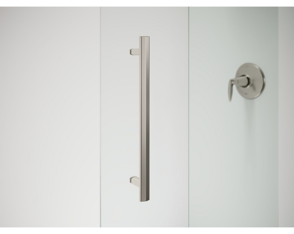 With modern style and crisp, clean design lines, Pleat brings new technology to the contemporary bath. Pleat shower doors feature a double header which conceals the wheels and door tracking system, while allowing the glass panels to rise above the header, giving the 79-1/16” tall door a sleek, lofted and airy look. The Stays Closed feature inside the header keeps the door firmly closed, providing excellent water containment, and fully bypassable glass panels make installation easier than ever and allow for adjustability while the door is hanging. Pleat’s 5/16" thick glass offers a luxurious, heavier feel.