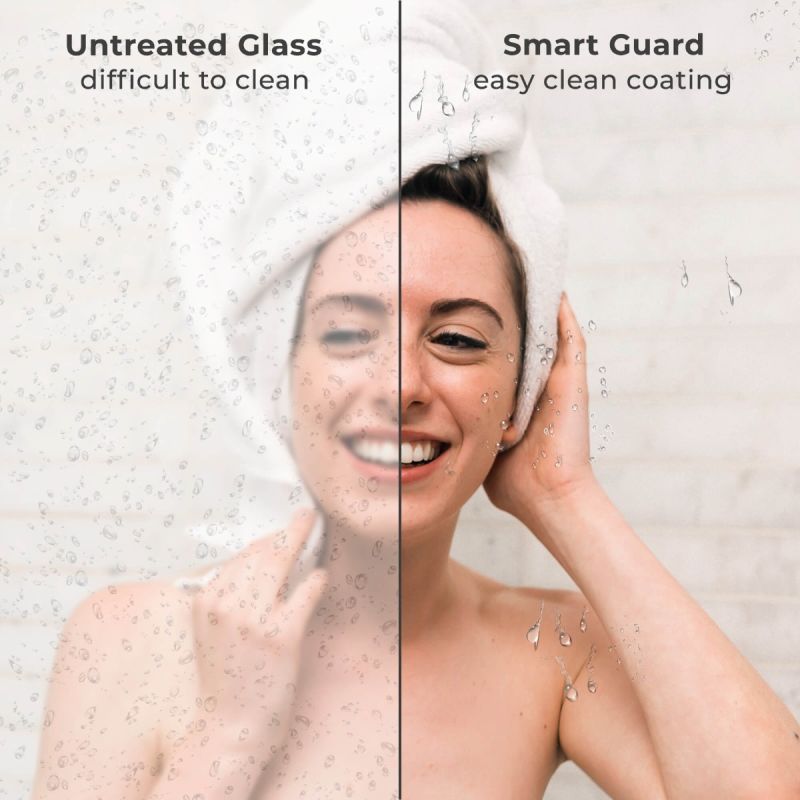 • Easy-Cleaning coating applied to one side of glass shower doors, reducing water spots, soap scum, and facilitating faster drying for effortless cleaning.