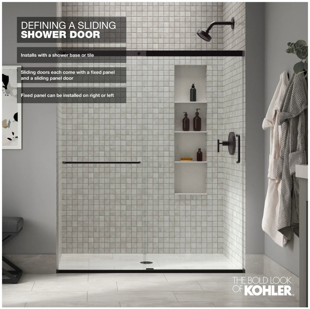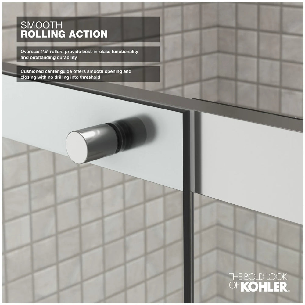 Kohler Elate® Sliding shower door (50.3" - 53.6" W x 75.5" H) with heavy 5/16" (8mm) thick Crystal Clear glass with privacy band