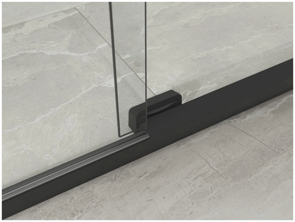 - Frameless design emphasizes glass and creates a sleek, minimalist look