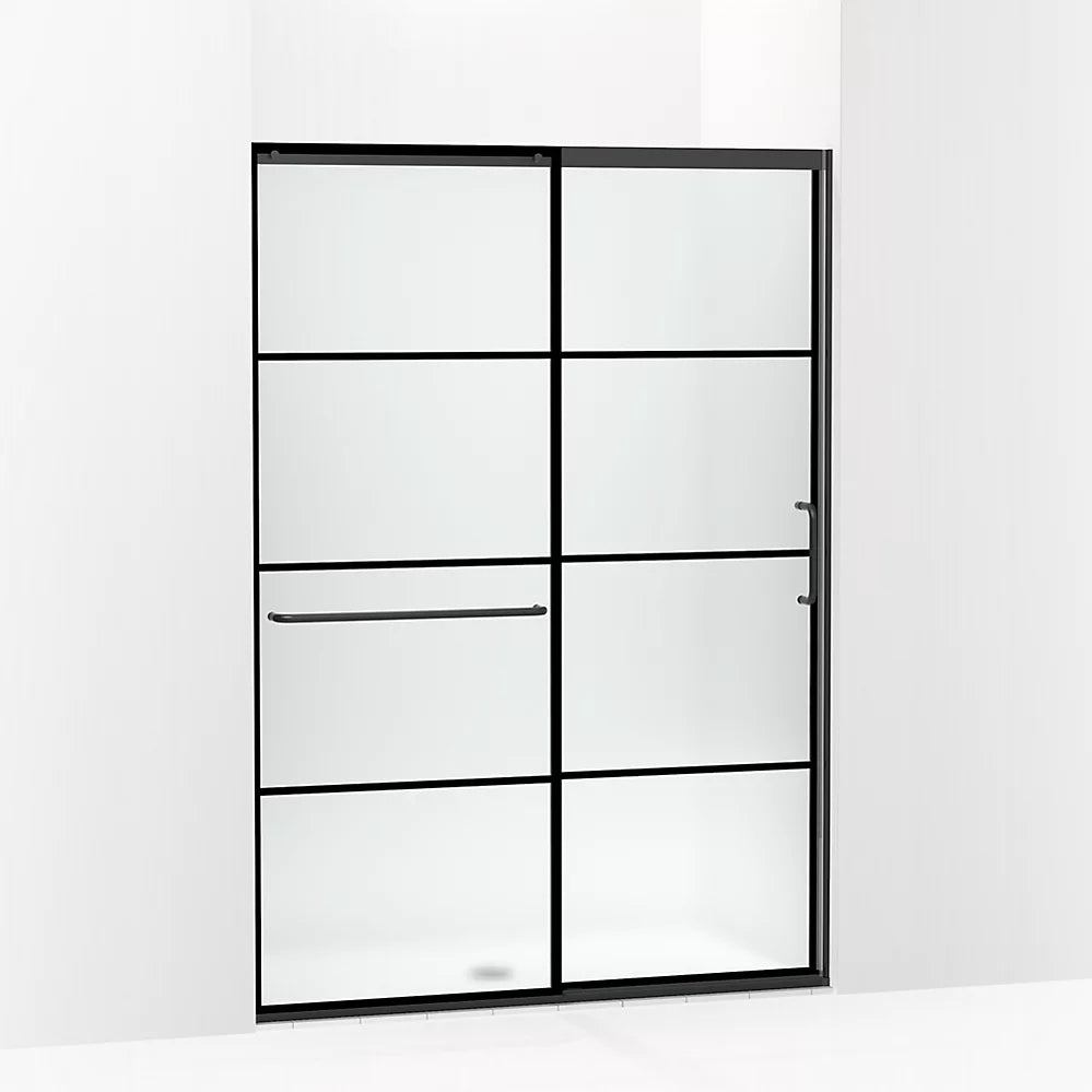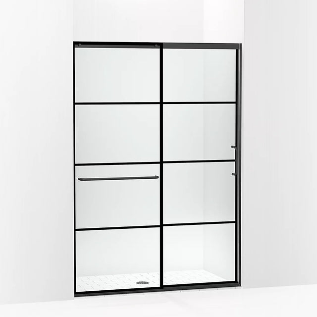 Kohler Elate® Sliding Shower door (50.3" - 53.6" W x 75.5" H) with heavy 5/16" (8mm) thick glass with Rectangular Grille Pattern in Matte Black