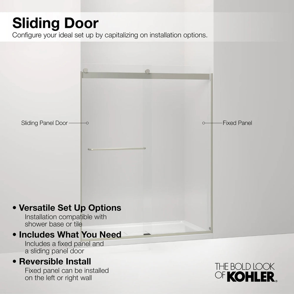Kohler Elate® Sliding shower door (44.3" - 47.6" W x 75.5" H) with heavy 5/16" (8mm) thick Crystal Clear glass with privacy band